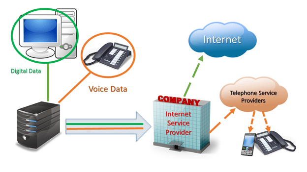 Your Hosted PBX phone line isn’t just a regular phone. In fact, it operates a lot more like your computer than a traditional phone which means call quality can be effected by your network performance. Your PBX phone is more like your laptop than a traditional phone in that the sound of your voice is digitized and carried through your company’s network. This is very similar to the digital data that makes up your email and document data. Voice data and digital data are not identical, however, and each must be handled in a unique way all across the network from your company’s server back through the line provided by your Internet Service Provider (ISP) out to the Internet itself.
